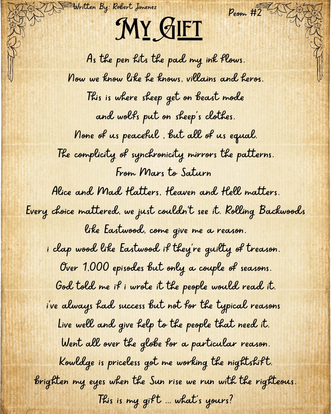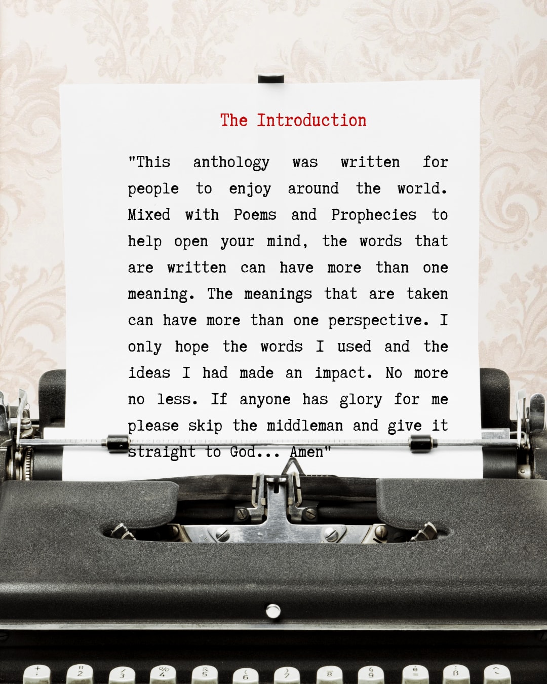 An anthology of sorts. Written to help open your mind.....Poems and Prophet ties